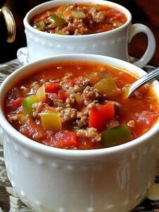 Stuffed peppers soup high protein is a warm and comforting dish that brings all the flavors of classic stuffed peppers into a simple and easy soup. Instead of stuffing each pepper and baking them, this recipe turns everything into a rich and hearty soup that is full of taste and nutrition. It combines tender meat, colorful peppers, rice, and spices in one pot, making it perfect for busy days. The texture is soft, the broth is flavorful, and every spoon feels satisfying.